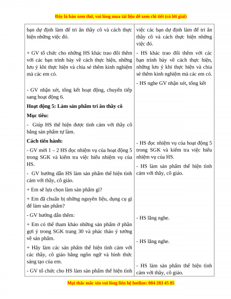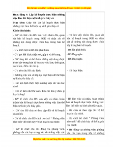 - Cuối mỗi tiết hoạt động, GV nên nhắc nhở lại những điều HS cần chuẩn bị cho tiết hoạt động sau.