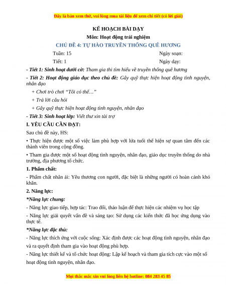 CHỦ ĐỀ 4: TỰ HÀO TRUYỀN THỐNG QUÊ HƯƠNG Tuần: 15 Ngày soạn: Tiết: 2 Ngày dạy: I. YÊU CẦU CẦN ĐẠT: Sau chủ đề này, HS: