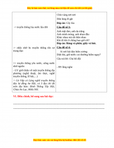 VI. Điều chỉnh, bổ sung sau bài dạy: