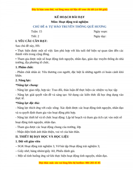 TÀI LIỆU BỘ BÁN CHẠY MÔN Hoạt động trải nghiệm