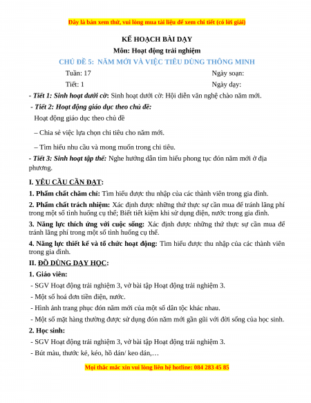 CHỦ ĐỀ 5: NĂM MỚI VÀ VIỆC TIÊU DÙNG THÔNG MINH Tuần: 17 Ngày soạn: Tiết: 2 Ngày dạy: I. YÊU CẦU CẦN ĐẠT: