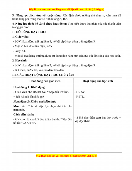 Giáo án HĐTN 3 Tuần 17 Chân trời sáng tạo : Năm mới và việc tiêu dùng thông minh