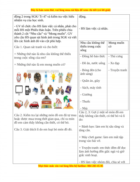 Mục tiêu: – Tìm hiểu nhu cầu và mong muốn trong chi tiêu. Cách tiến hành.