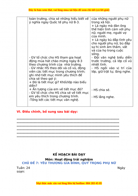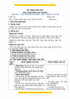 CHỦ ĐỀ 7: YÊU THƯƠNG GIA ĐÌNH, QUÝ TRỌNG PHỤ NỮ Tuần: 24 Ngày soạn: