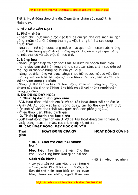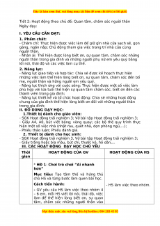 Tiết 2: Hoạt động theo chủ đề: Quan tâm, chăm sóc người thân Ngày dạy: I. YÊU CẦU CẦN ĐẠT: 1. Phẩm chất: