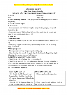 CHỦ ĐỀ 7: YÊU THƯƠNG GIA ĐÌNH, QUÝ TRỌNG PHỤ NỮ Tuần: 26 Ngày soạn: Tiết: 1 Ngày dạy: