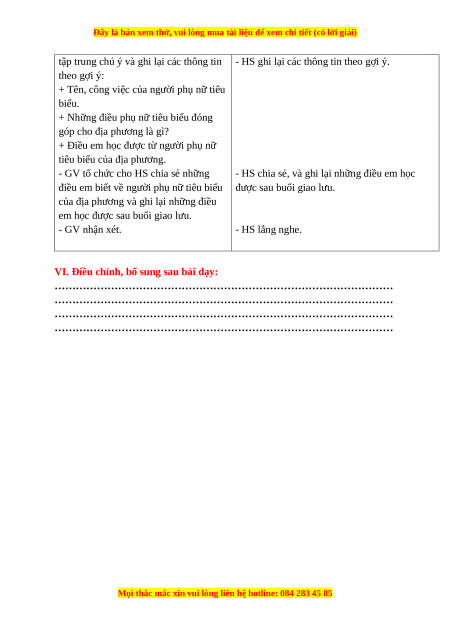 VI. Điều chỉnh, bổ sung sau bài dạy:
