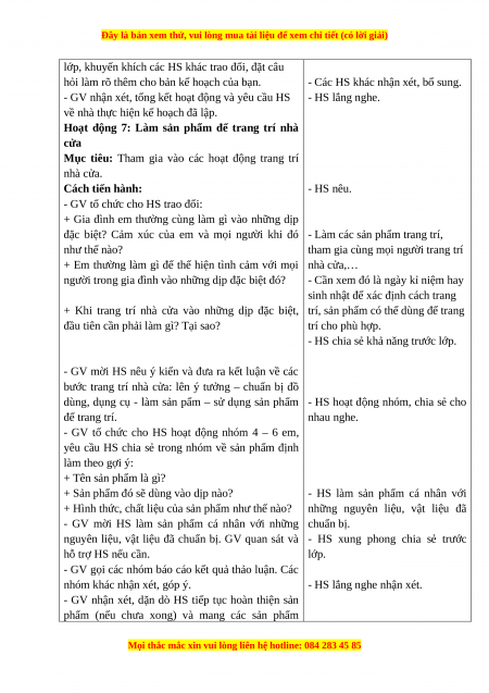 Hoạt động 7: Làm sản phẩm để trang trí nhà