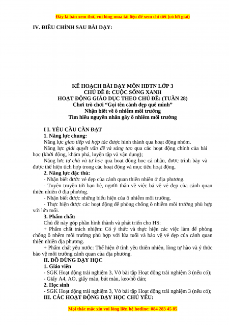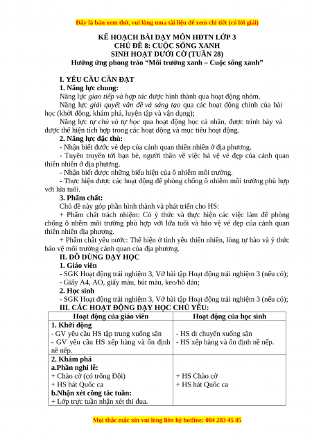 KẾ HOẠCH BÀI DẠY MÔN HĐTN LỚP 3