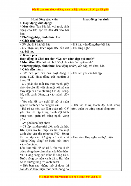 * Phương pháp, hình thức: hoạt động nhóm, vấn đáp, trò chơi, hát.