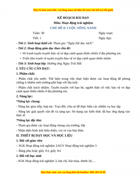 TÀI LIỆU BỘ BÁN CHẠY MÔN Hoạt động trải nghiệm