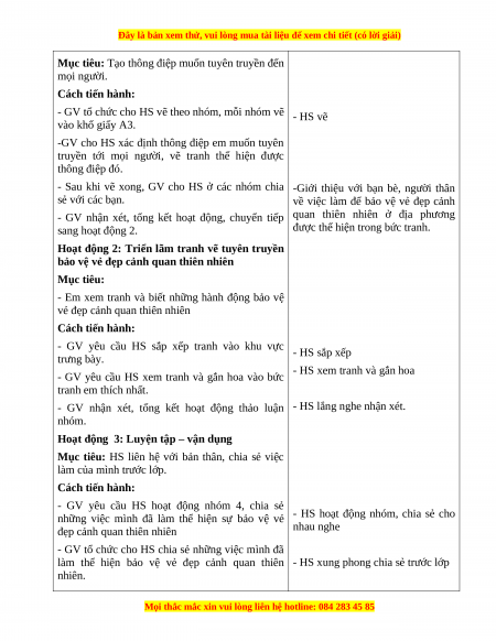 - Phẩm chất trách nhiệm: Tuyên truyền với bạn bè, người thân về việc bảo vệ vẻ đẹp