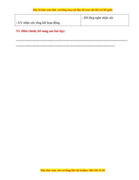 VI. Điều chỉnh, bổ sung sau bài dạy: