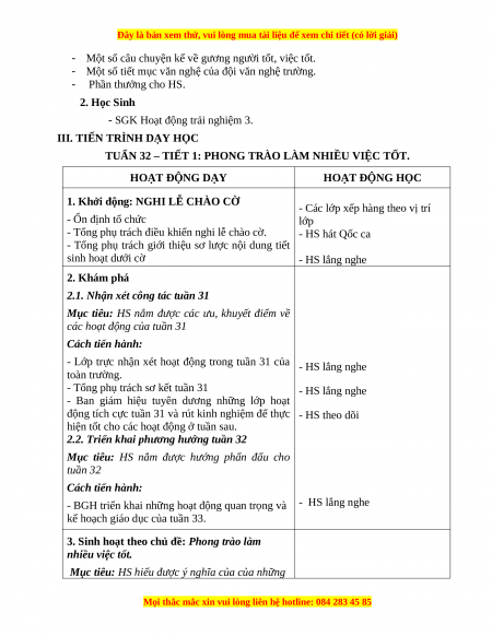 TUẨN 32 – TIẾT 1: PHONG TRÀO LÀM NHIỀU VIỆC TỐT. HOẠT ĐỘNG DẠY HOẠT ĐỘNG HỌC