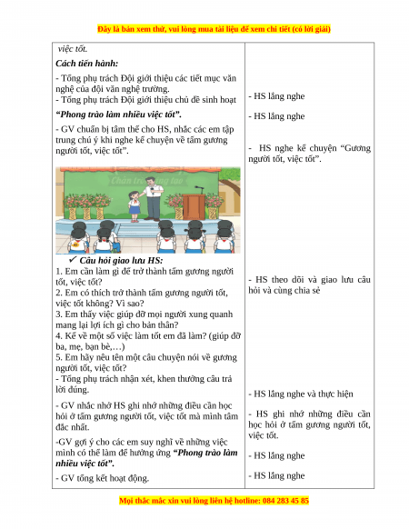 - Tổng phụ trách giới thiệu sơ lược nội dung tiết