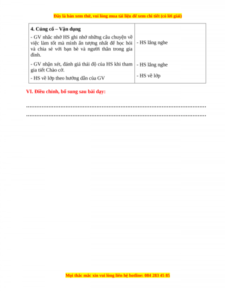 VI. Điều chỉnh, bổ sung sau bài dạy: