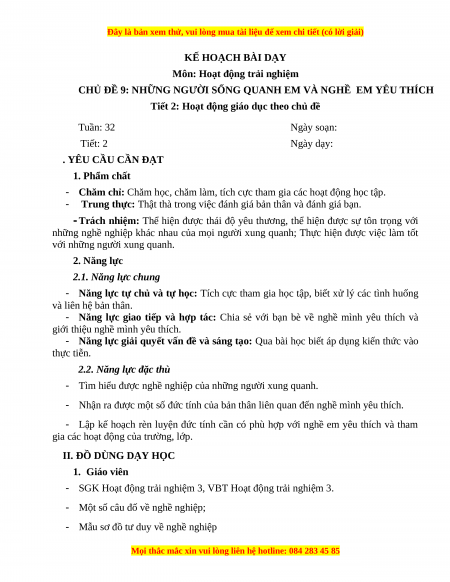 TÀI LIỆU BỘ BÁN CHẠY MÔN Hoạt động trải nghiệm