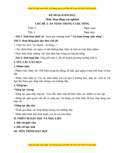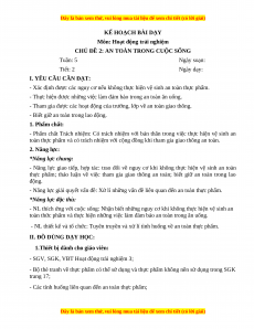 CHỦ ĐỀ 2: AN TOÀN TRONG CUỘC SỐNG Tuần: 5 Ngày soạn: Tiết: 2 Ngày dạy: I. YÊU CẦU CẦN ĐẠT: