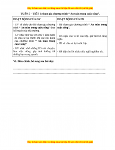 TUẨN 5 – TIẾT 1: tham gia chương trình “ An toàn trong cuộc sống”.