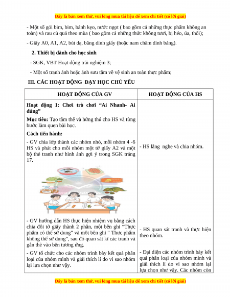 - Bộ thẻ tranh về thực phẩm có thể sử dụng và thực phẩm không nên sử dụng trong SGK