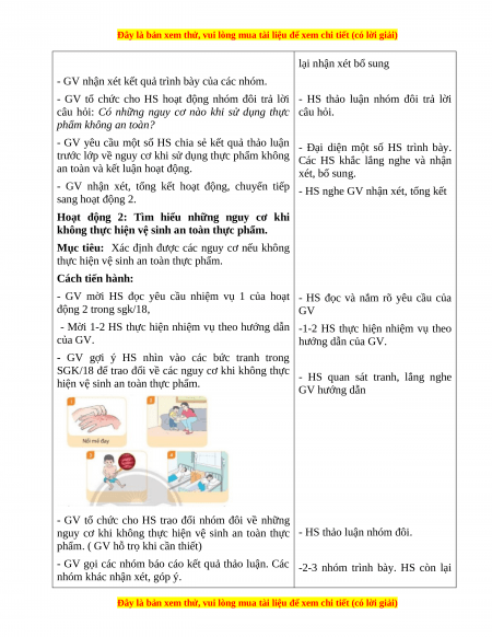 - Năng lực giao tiếp, hợp tác: trao đổi về nguy cơ khi không thực hiện vệ sinh an toàn