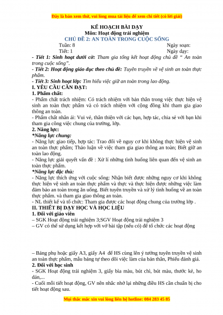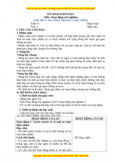 CHỦ ĐỀ 2: AN TOÀN TRONG CUỘC SỐNG Tuần: 8 Ngày soạn: Tiết: 2 Ngày dạy: I. YÊU CẦU CẦN ĐẠT: 1. Phẩm chất: