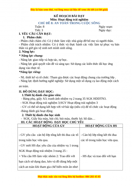 Giáo án HĐTN 3 Tuần 8 Chân trời sáng tạo : An toàn trong cuộc sống