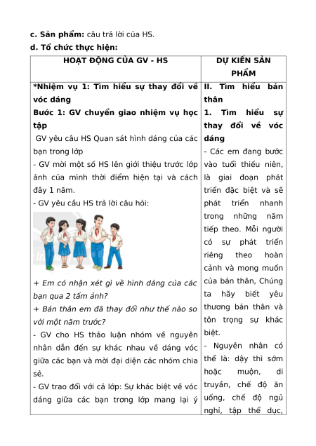 + Giải thích được ảnh hưởng của sự thay đổi cơ thể đến các trạng