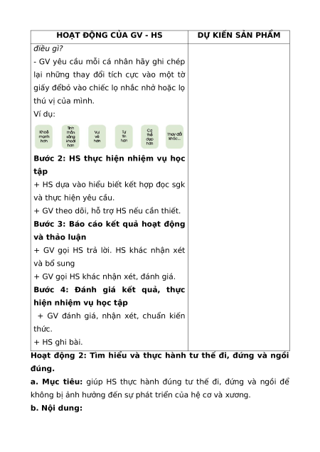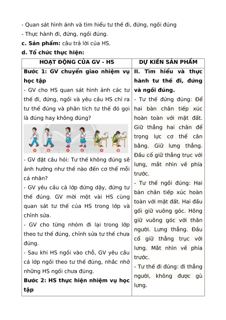 - Nhiệm vụ 2: Tìm hiểu tư thế đi, đứng, ngồi đúng