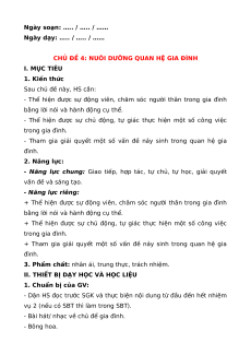 CHỦ ĐỀ 4: NUÔI DƯỠNG QUAN HỆ GIA ĐÌNH I. MỤC TIÊU 1. Kiến thức