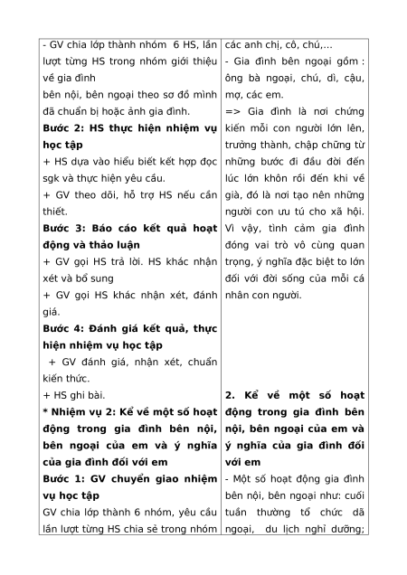 * Nhiệm vụ 2: Kể về một số hoạt động trong gia đình bên