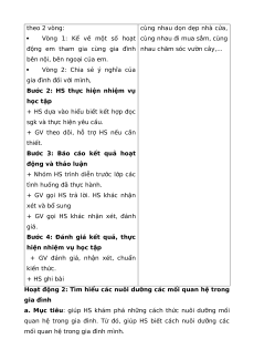 quan hệ trong gia đình. Từ đó, giúp HS biết cách nuôi dưỡng các