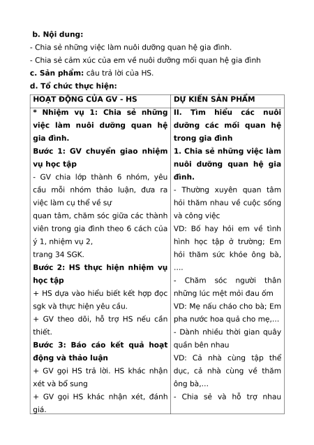 - Nhiệm vụ 2: Tìm hiểu cách nuôi dưỡng các mối quan hệ trong gia đình