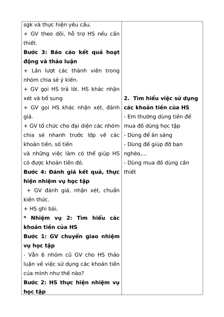 - Tìm hiểu việc sử dụng các khoản tiền của HS