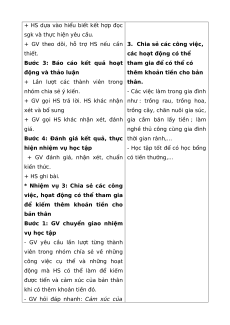 + GV theo dõi, hỗ trợ HS nếu cần 3. Chia sẻ các công việc, thiết.