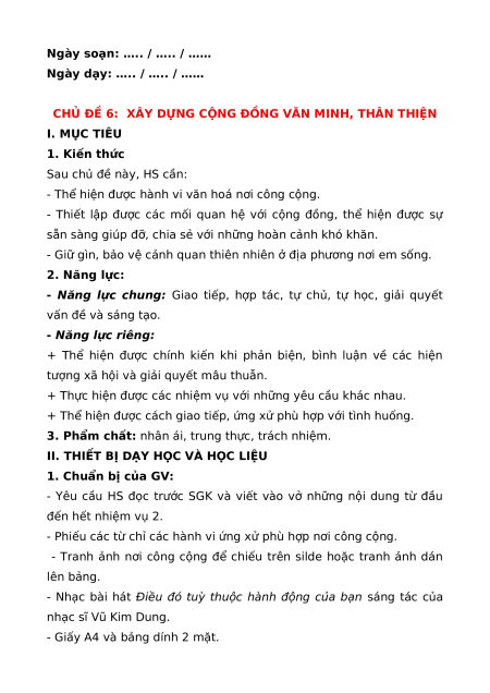 CHỦ ĐỀ 6: XÂY DỰNG CỘNG ĐỒNG VĂN MINH, THÂN THIỆN I. MỤC TIÊU 1. Kiến thức