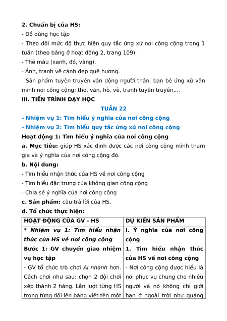 - Nhiệm vụ 1: Tìm hiểu ý nghĩa của nơi công cộng