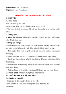 Giáo án HĐTN 6 Chân trời sáng tạo Chủ đề 9. Tôn trọng người lao động