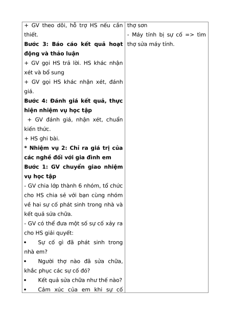 * Nhiệm vụ 1: Tìm thợ sửa chữa II. Giá trị của nghề
