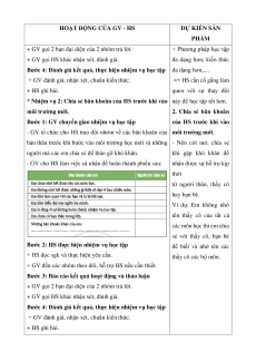 cầu trong phần chuẩn bị) và trao đổi với HS xem các em đã 1. Tìm hiểu môi