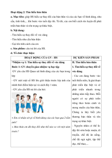 *Nhiệm vụ 1: Tìm hiểu sự thay đổi về vóc dáng