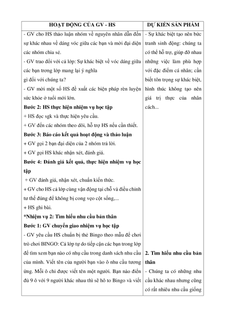 cầu, tính tình,... khi bước vào tuổi dậy thì. Từ đó, các em biết cách rèn luyện để phát