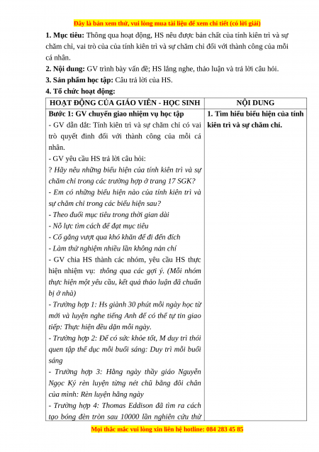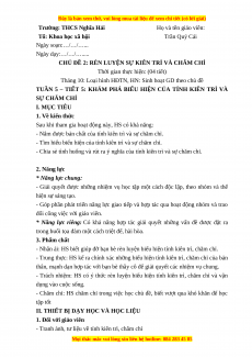 TUẦN 5 – TIẾT 5: KHÁM PHÁ BIỂU HIỆN CỦA TÍNH KIÊN TRÌ VÀ SỰ CHĂM CHỈ I. MỤC TIÊU 1. Về kiến thức
