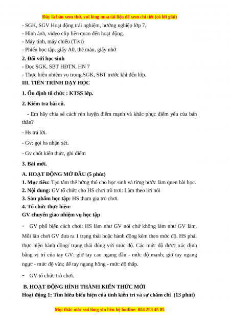 - SGK, SGV Hoạt động trải nghiệm, hướng nghiệp lớp 7.