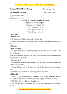 Tổ: Khoa học Tự Nhiên Trần Thị thu Loan Ngày soạn: 20/5/2022 Ngày dạy:…/…/….....
