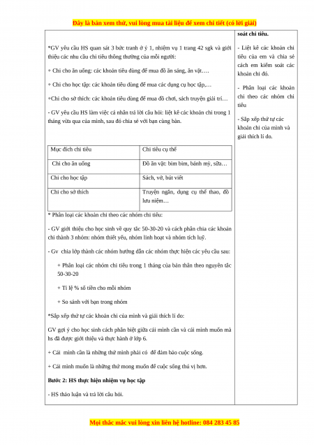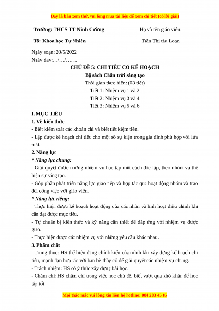 Giáo án HĐTN 7 Chân trời sáng tạo Chủ đề 5: Chi tiêu có kế hoạch