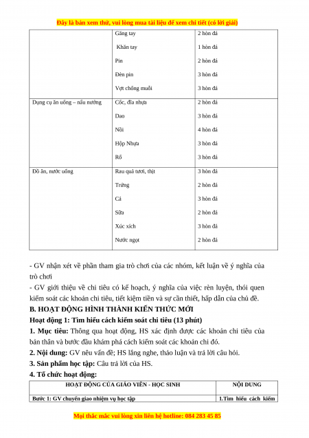 1. Mục tiêu: Thông qua hoạt động, HS xác định được các khoản chi tiêu của