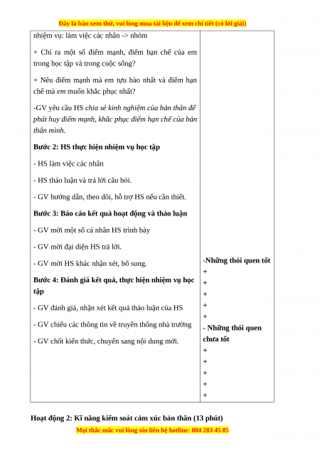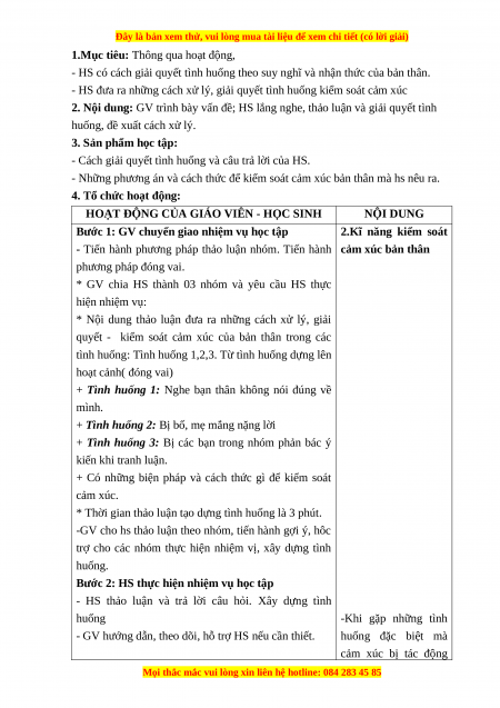 - HS đưa ra những cách xử lý, giải quyết tình huống kiểm soát cảm xúc