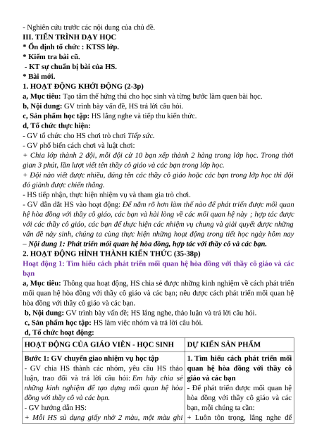 – Nội dung 1: Phát triển mối quan hệ hòa đồng, hợp tác với thầy cô và các bạn.
