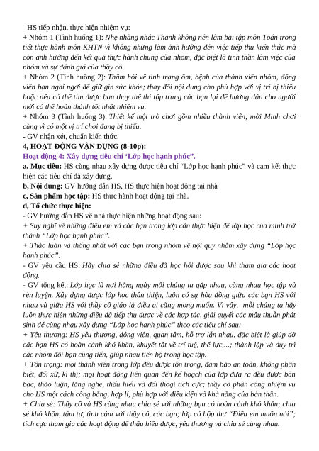 b, Nội dung: HS thảo luận nhóm, đưa ra ý kiến về việc xử lí các tình huống dựa vào tri